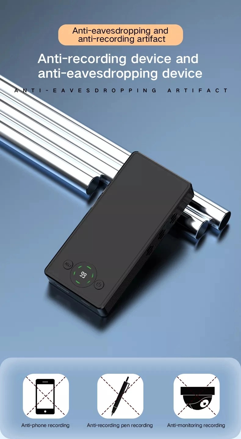 Le Bloqueur anti-enregistrement F10 peut également être utilisé comme une banque d'alimentation mobile temporaire, placé sur la table pour l'utilisation, et sa coque en alliage brossé est résistante à la pollution et à l'usure. La distance d'interférence effective est de 1 à 15 m. Il peut également être contrôlé par télécommande, ce qui est très pratique.